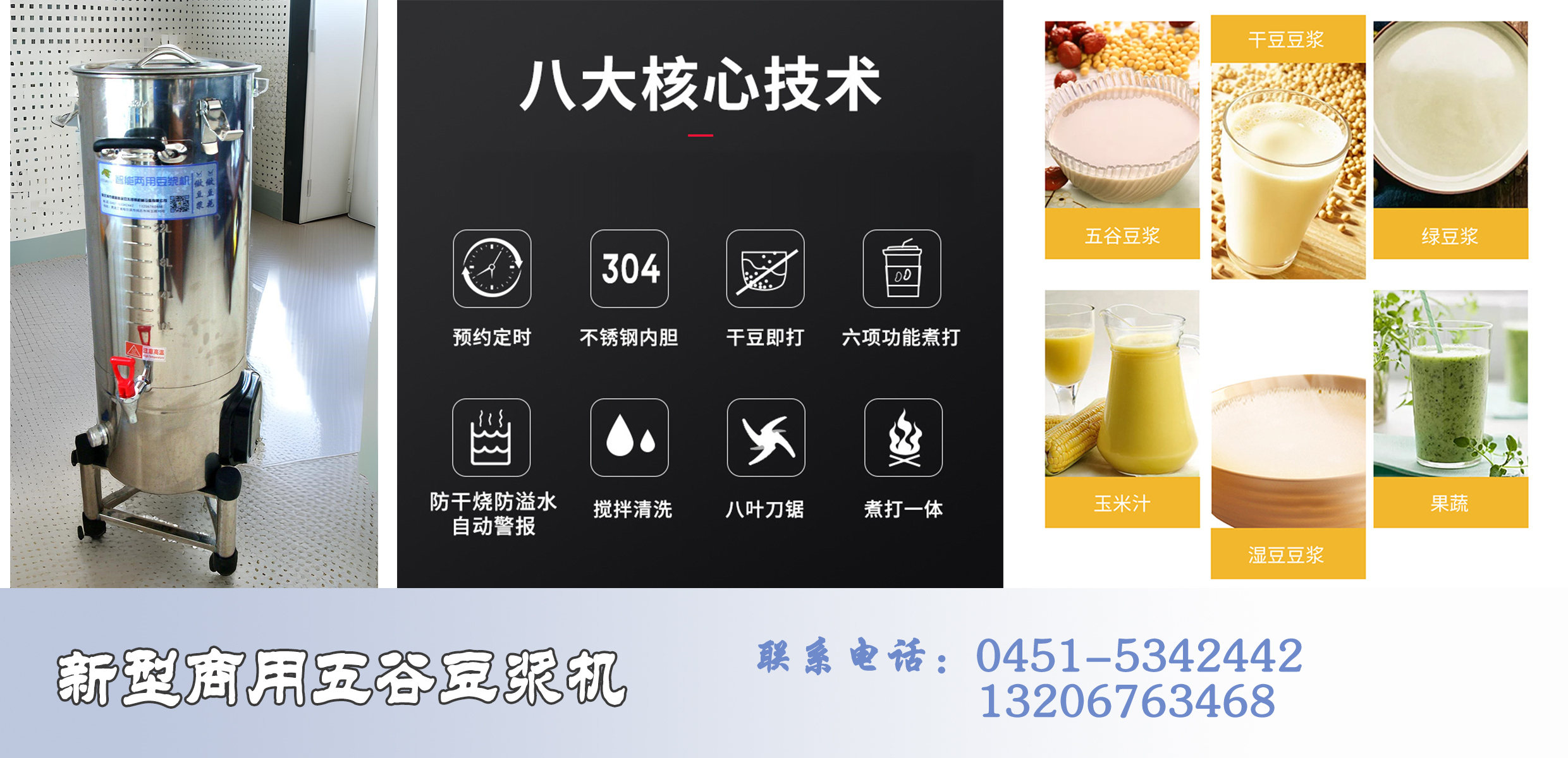 《哈爾濱市盛迪鑫金豆不銹鋼機械設備有限公司》主要經營:豆制品加工生產設備、酒店廚房設備和不銹鋼機械設備制造等,公司根據客戶需求,結合國內外同類產品的先進經驗,以不斷更新研制產品自動化為主,讓用戶使用上先進、衛生、可靠的生產設備。2010年公司(豆腐機、豆?jié){機、煮漿機系列產品),榮獲:CHC高科技質量監(jiān)督委員會《監(jiān)督檢測合格*質量信得過產品》的稱號;2011年被評為我市的十佳創業之星,2016年《盛迪鑫金豆》被評選為哈爾濱市商標。